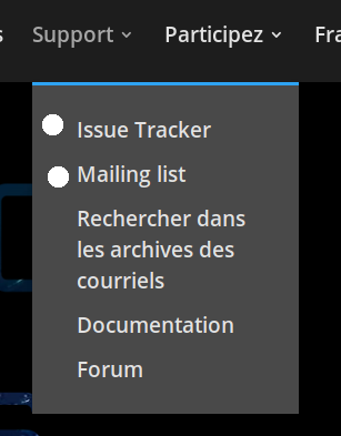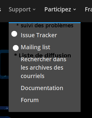 Image 2: * Issue Tracker -> Suivi des problèmes * Mailing list -> Liste de diffusion