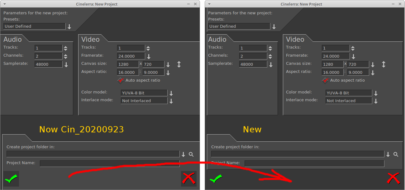 - The background of the New Project window (at the bottom) don't mix the OK and Cancel buttons (Cin_20200923_c2_NewProject.png).