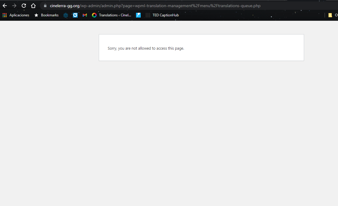 Hi Aldana, Sorry for the late reply, I was very busy with my work. I don't quite understand the problem with the translation website, since you are still registered as a translator. It seems to be a technical problem with a plugin. I will have time to take care of this problem after Christmas holidays and will try to fix this problem. Thanks for your help, you will hear from me. Sam Am 10.12.21 um 00:12 schrieb Aldana Montiel via Cin: