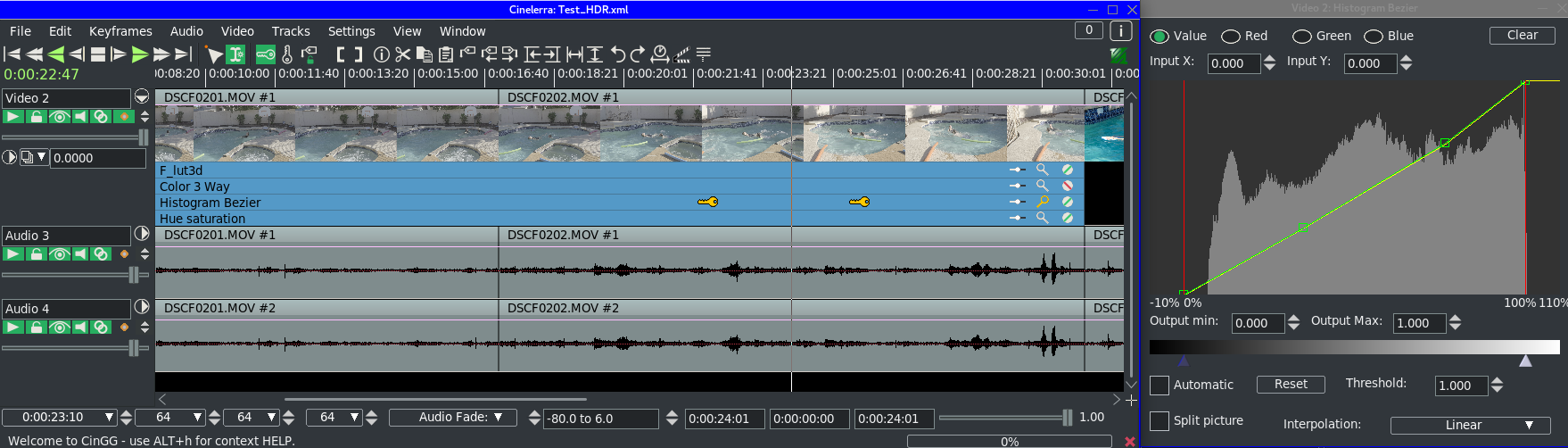 You can see the changes to the curves in the three screenshots at different points on the timeline. It is reflected in the compositor, but not in the rendered output. -- Cin mailing list Cin@lists.cinelerra-gg.org https://lists.cinelerra-gg.org/mailman/listinfo/cin