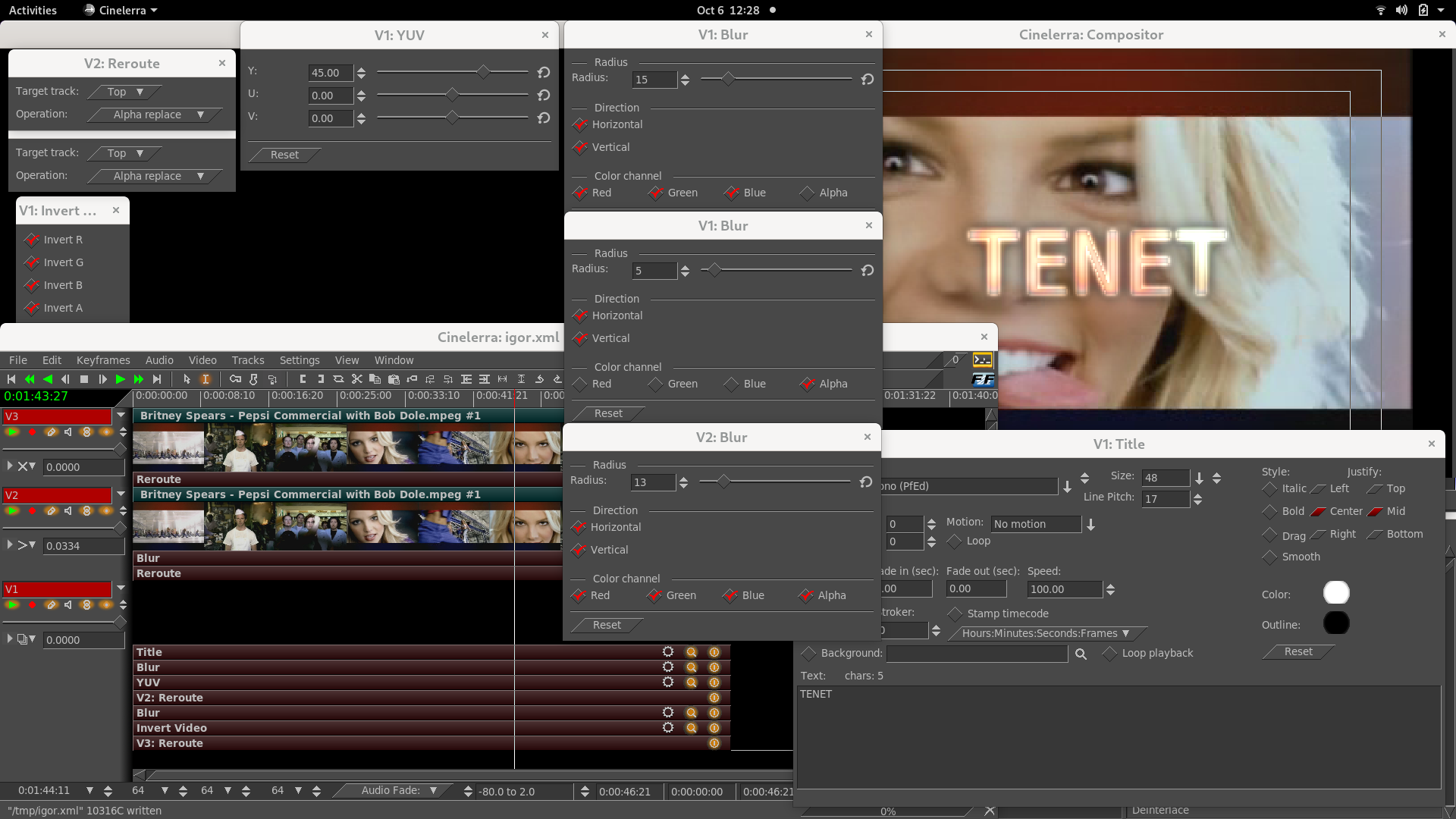 Here, only an example about Igor_ubuntu's Reroute and Alpha Channel, in Cinelerra-GG. This is not meant to be a competition but to show what Cinelerra-GG can do, referring to Igor_ubuntu's tutorial. The output, of course, can not be like in Cinelerra-CV. - Project Format: 1280x720 @24fps, RGBA-8bit - Cinelerra-GG version: CinGG_20220630