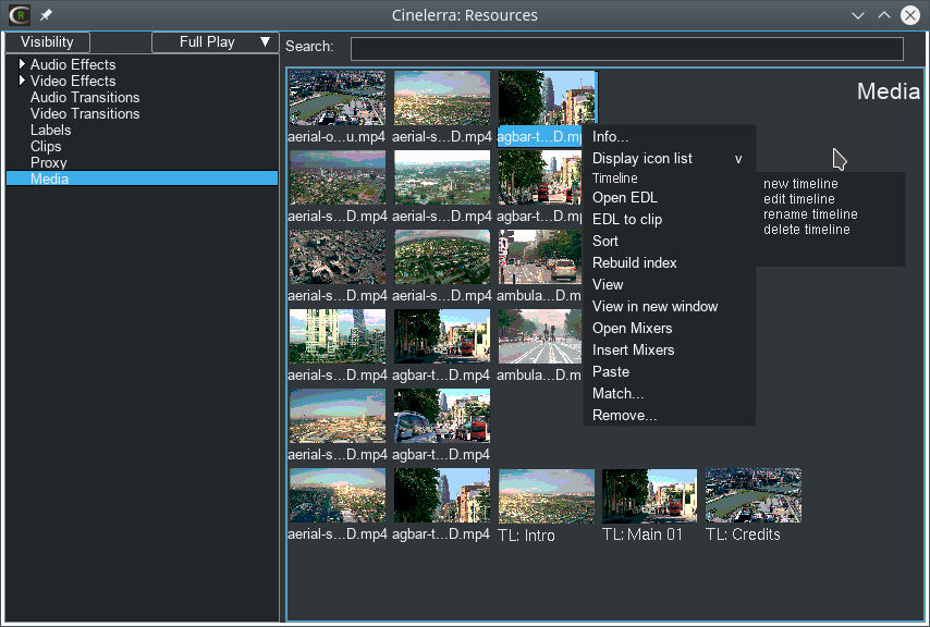 The problem is that professional NLEs have been using this feature for a long time, but Cinelerra has not. All detours to simulate multiple timelines are only detours and no real solutions. "Nested Clips" and "Edit EDL" are not multiple timelines. Nested Clips and Edit EDL functions can be used to program the desired timeline feature. OpenTimeline could be used as a basis for this. We want to be an alternative to the commercial NLEs (Windows replacement), but Cinelerra would need to be able to handle a relatively simple feature like timelines. Users of the commercial NLEs know this feature very well and all previous methods on Cinelerra are not multiple timelines. For this reason, I work almost exclusively with DV Resolve, because I have this feature there. However, I'm not a friend of non-open source software, but unfortunately I have no choice but to work with it. The timeline feature is not a big magic work, the basics were already done by GG with the new EDL features. The EDL & Nested Clips feature would only need to be extended by a few additional functions. Sam